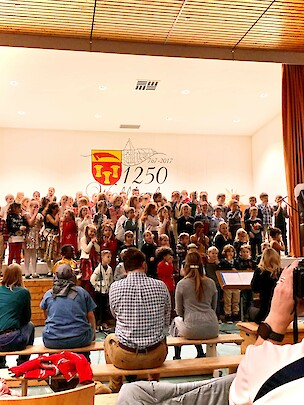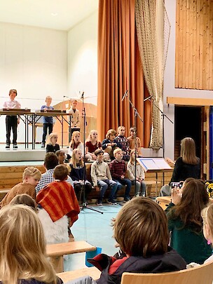 Den Auftakt bildete die Handglockengruppe. Genau zum richtigen Zeitpunkt läuteten die einzelnen Kinder ihre Glocke, sodass die Klänge harmonisch zur Melodie von Jingle Bells verschmolzen. Anschließend sangen alle Anwesenden englische und deutsche Weihnachtslieder, das Publikum bestaunte die Tanzgruppe und freute sich über die Chorbeiträge.