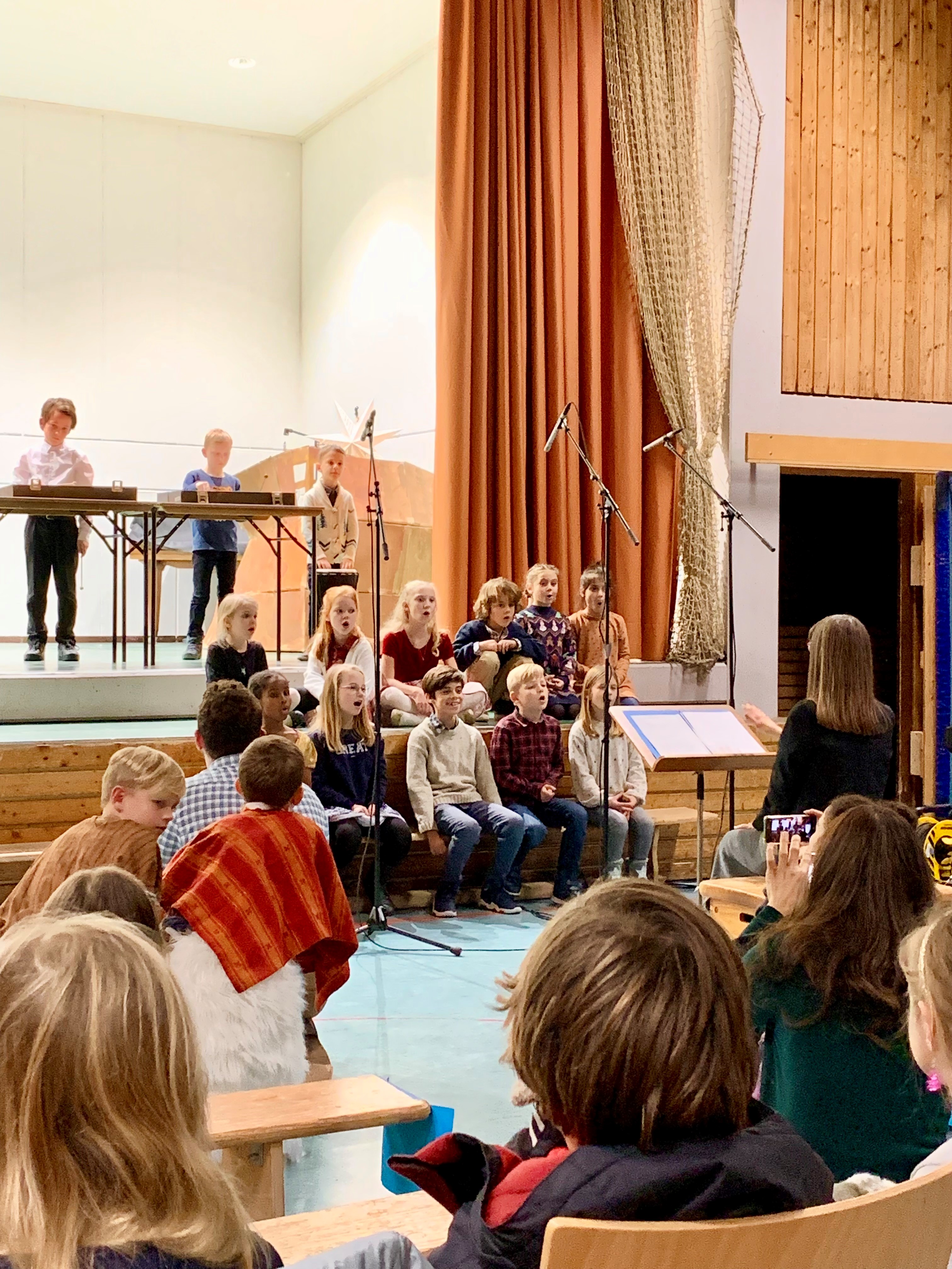„Der Himmel kommt zu uns“ sang der Chor passend zum Theaterstück, und ein beschwingtes „Feliz Navidad“ mit allen Klassen auf der Bühne rundete das wunderschöne Konzert ab.