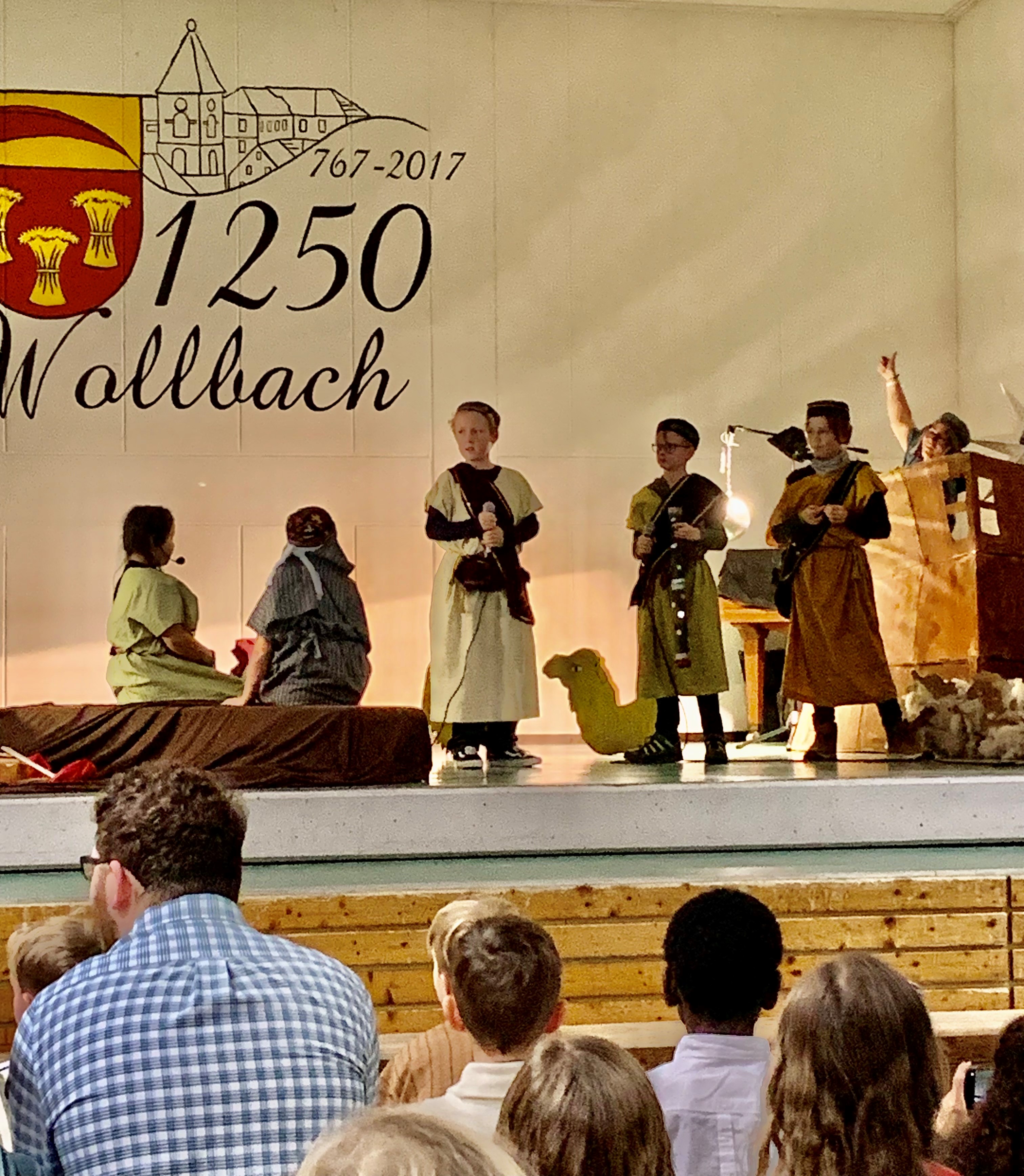Im Theaterstück entdeckten die Sterndeuter einen unbekannten Stern – der in der Sporthalle an der Befestigung der Seile baumelte und sich sogar bewegte! – und sie folgten ihm durch die Wüste. Dort führten sie tiefgründige Gespräche. „Wir Menschen haben nur unsere eigenen Ziele im Kopf, für Gott ist kein Platz mehr.“